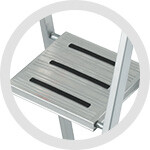 - Profilowane stopnie o głębokości 80 mm zapewniają bezpieczne stanie i wygodne użytkowanie drabiny