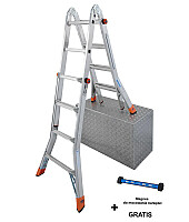- Aluminiowa drabina przegubowa, teleskopowa; zastosowanie jako dwustronna drabina wolnostojąca, drabina przystawna lub jako dwie osobne dwustronne drabiny wolnostojące.